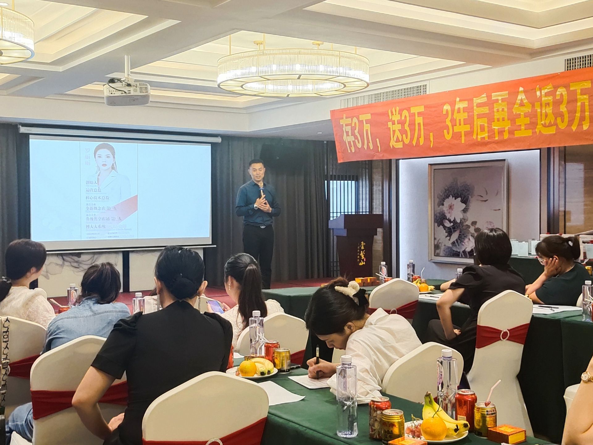會議首先由愛麗會所創始人羅總上臺致辭,感謝大家長期以來的支持和厚愛,愛麗用最樸實的行動感恩最尊貴的客戶,用負責任的態度與大家攜手共創美好的明天!希望通過本次會議,能夠讓今天到場的每一位客戶都有所收獲。